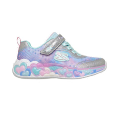 Sporty style gets lit-up and lovable with Skechers S-Lights®: Eternal Heart Lights. This lighted design features a sparkle mesh and synthetic glitter upper with stretch-laced front, and a Skechers adaptive closure.