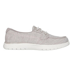 Iconic design and premium materials fuse with innovative Skechers Performance technology to achieve the ultimate in comfort and style. Skechers On-the-GO? Flex - Ashore has a colorful heathered finish soft linen fabric upper in a casual boat shoe design with a Skechers Air-Cooled Goga Mat? insole and lightweight ULTRA GO? cushioning.