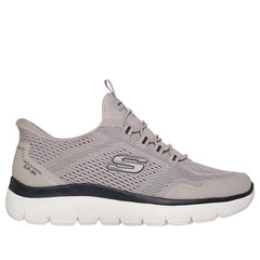 Step into easy-wearing comfort with Skechers Hands Free Slip-ins?: Summits - Top Rate. Designed with our exclusive Heel Pillow?, this casual vegan slip-on features an engineered mesh upper with 3D hotmelt overlays, fixed stretch laces, and a cushioned Skechers Memory Foam? insole.