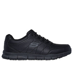 Experience slip-resistant safety and comfort wearing Skechers Work™: Nampa - Osil. This athletic style features a synthetic upper with stretch laces, slip-resistant outsole, plus a Skechers Memory Foam™ cushioned comfort insole.