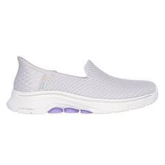 Step-in to convenient walking comfort and cushioning wearing Skechers Hands Free Slip-ins?: GO WALK 7? - Daley. Designed with our exclusive Heel Pillow?, this vegan TOUCHLESS FIT? slip-on features a breathable monomesh upper with a Skechers Air-Cooled Memory Foam? insole, lightweight ULTRA GO? cushioning, Hyper Pillar Technology?, and an added Soft Stride? foam layer for extra comfort.